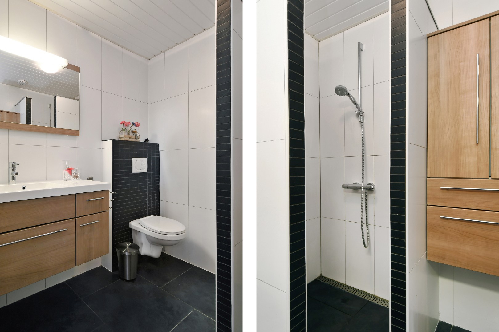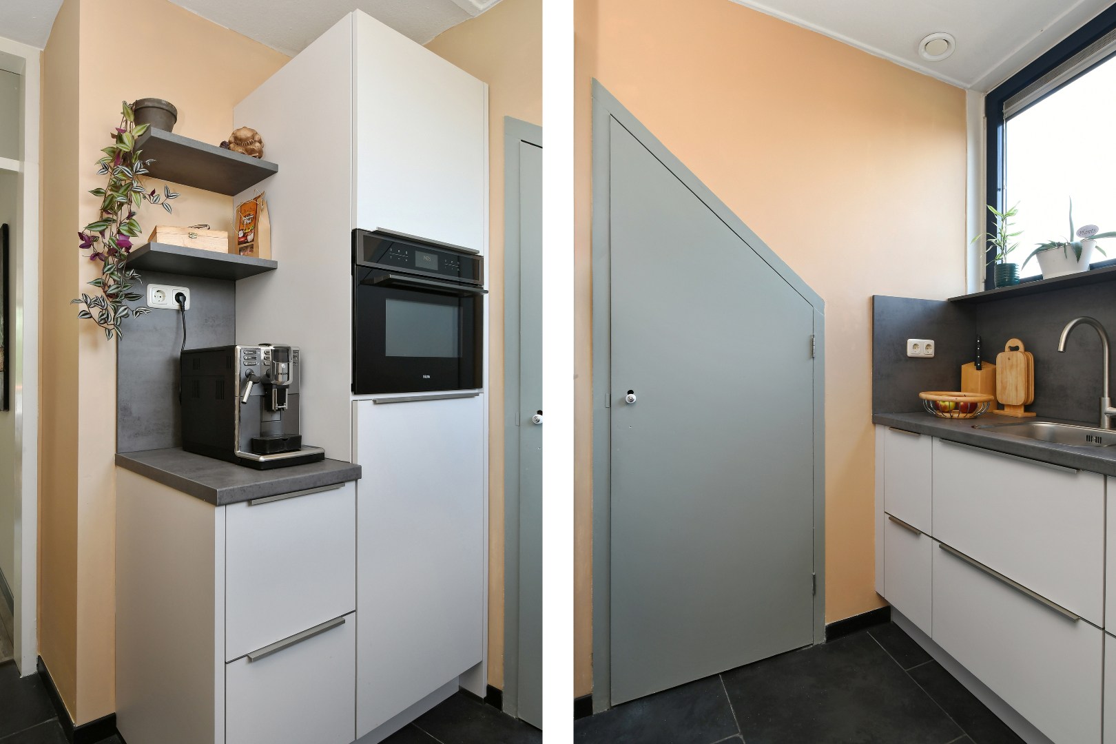 De keuken is in 2024 volledig vernieuwd en voorzien van een moderne opstelling met koelkast, combi-oven, inductiekookplaat en afzuigkap. De badkamer is eerder al gemoderniseerd en uitgerust met een inloopdouche, wastafelmeubel en zwevend toilet. Ook de slaapkamer is praktisch ingericht met een dakkapel en vaste kastenwand.