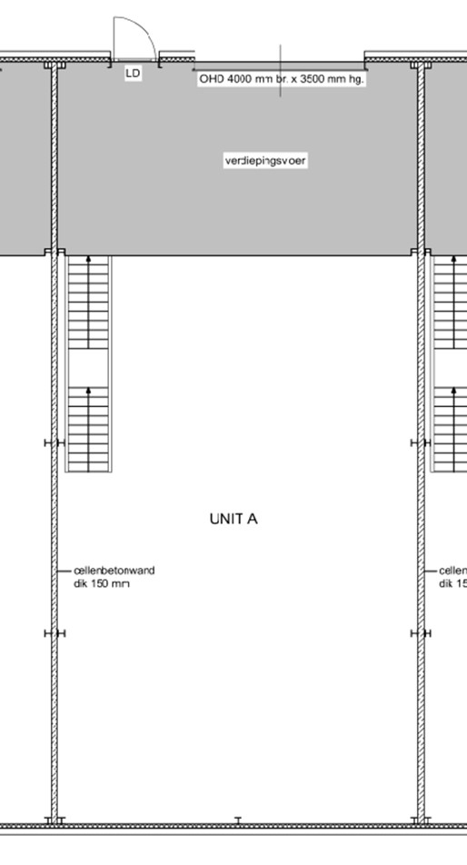 • De overheaddeur van de unit is 3,50x3,50m (b x h);
