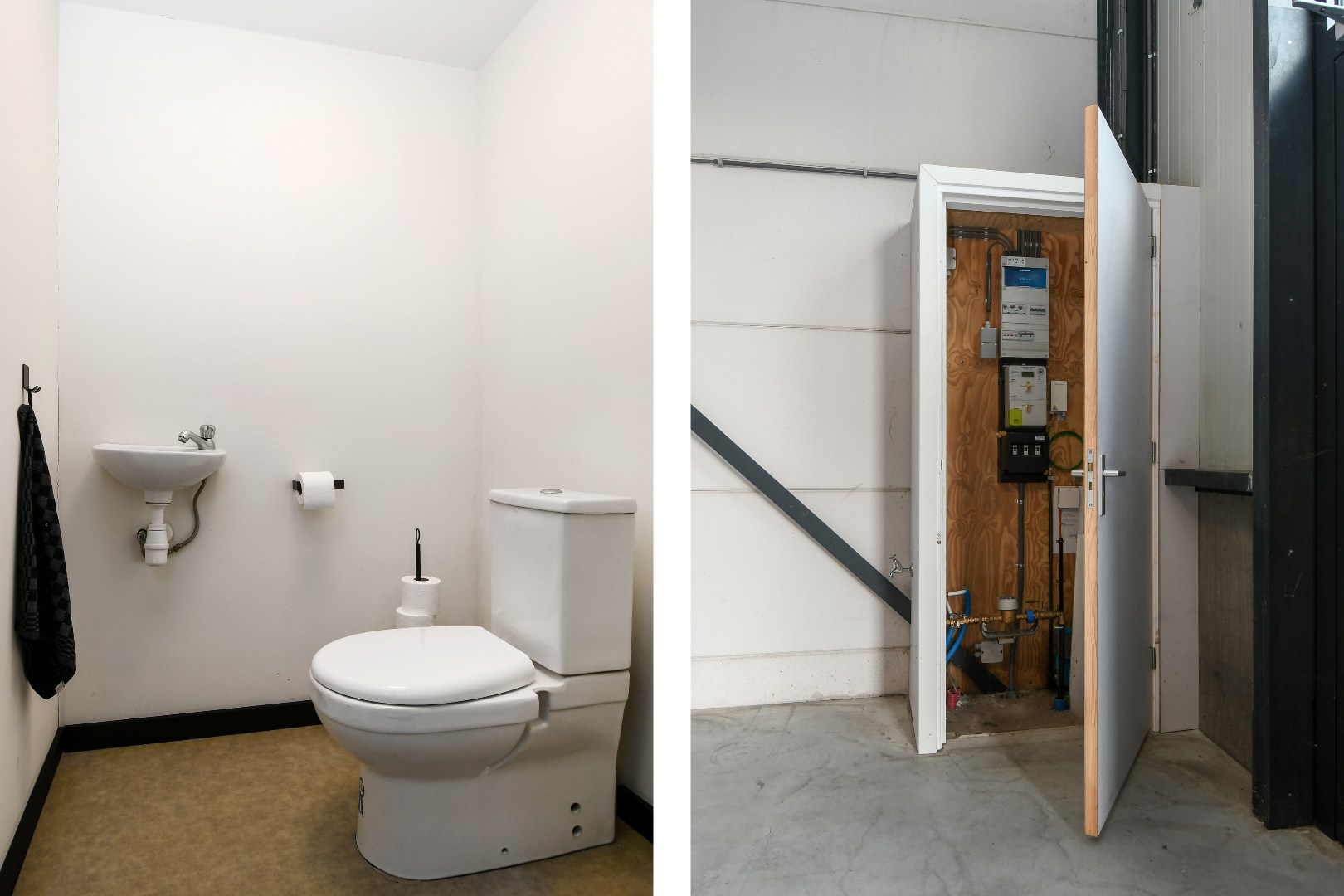 Het buitenterrein is volledig verhard, omheind en voorzien van een elektrische schuifpoort op afstandsbediening. Bij de bedrijfsunit horen drie eigen parkeerplaatsen.