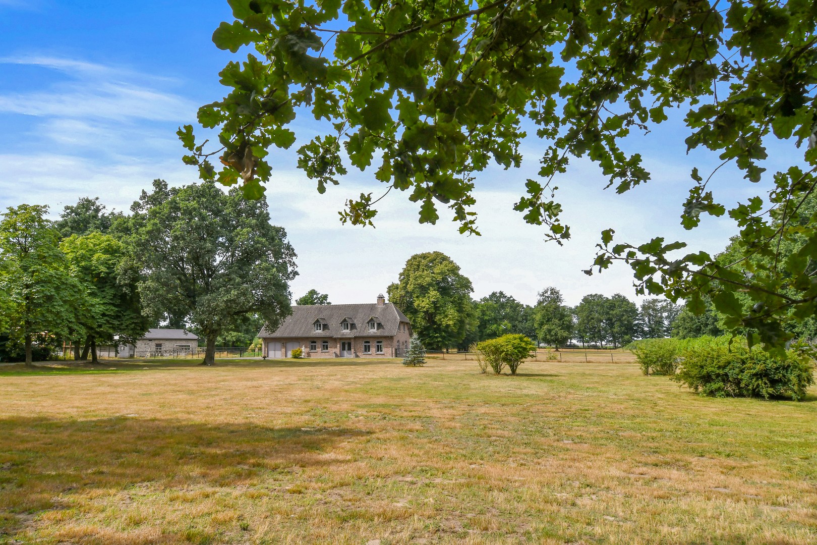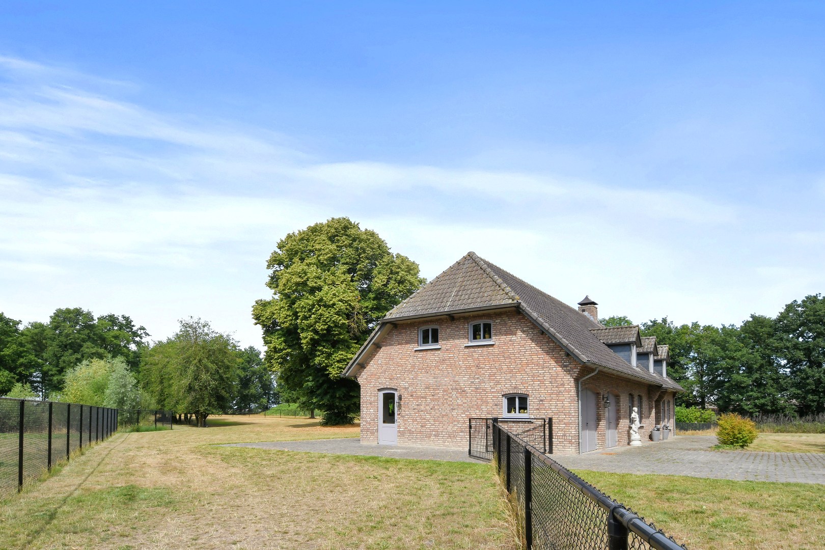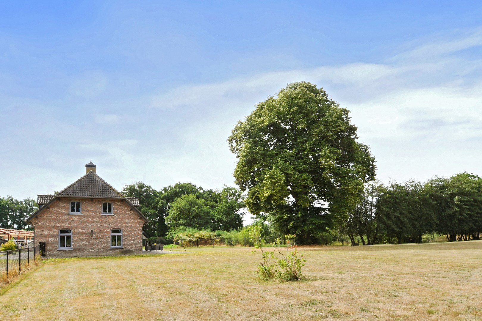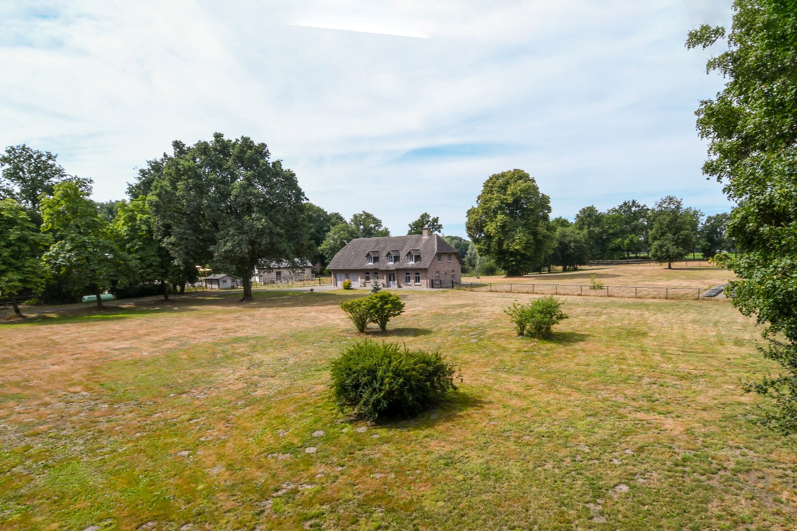 De prachtig aangelegde, volledig omheinde tuin biedt optimale privacy en is een paradijs voor natuurliefhebbers. De statige oprijlaan, het grote gazon, de volwassen bomen en de eigen grondwaterput completeren het geheel. Het perceel is uitermate geschikt voor het hobbymatig houden van dieren, zoals paarden aan huis.