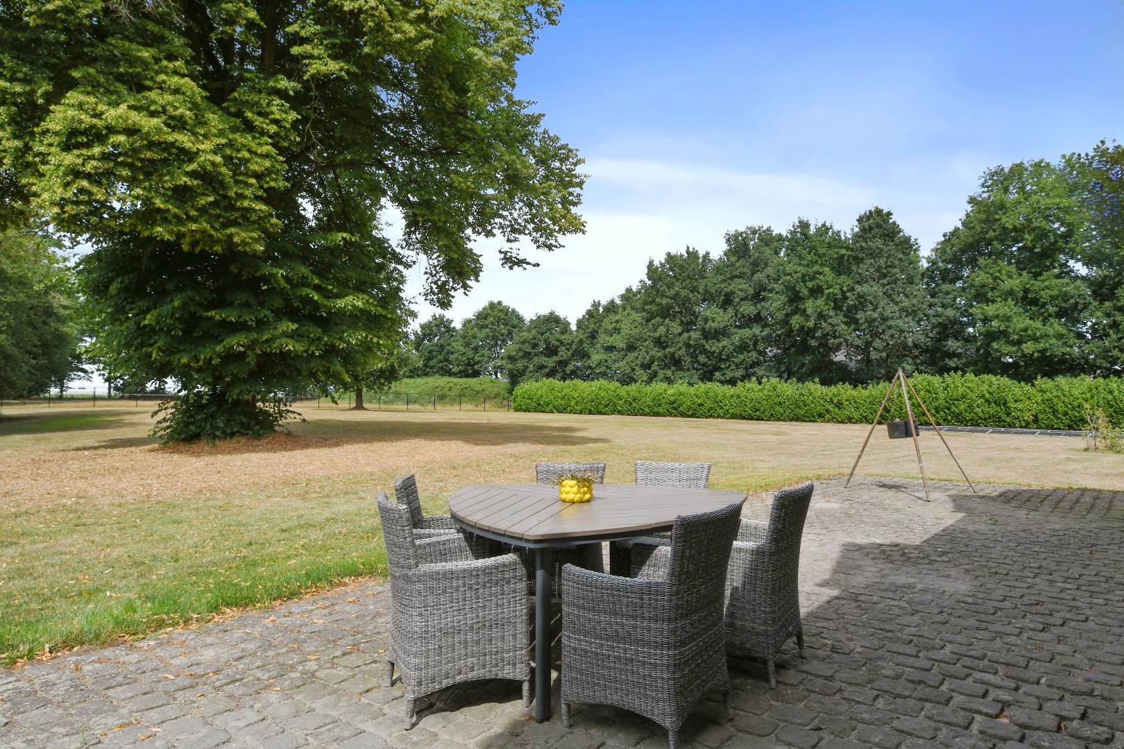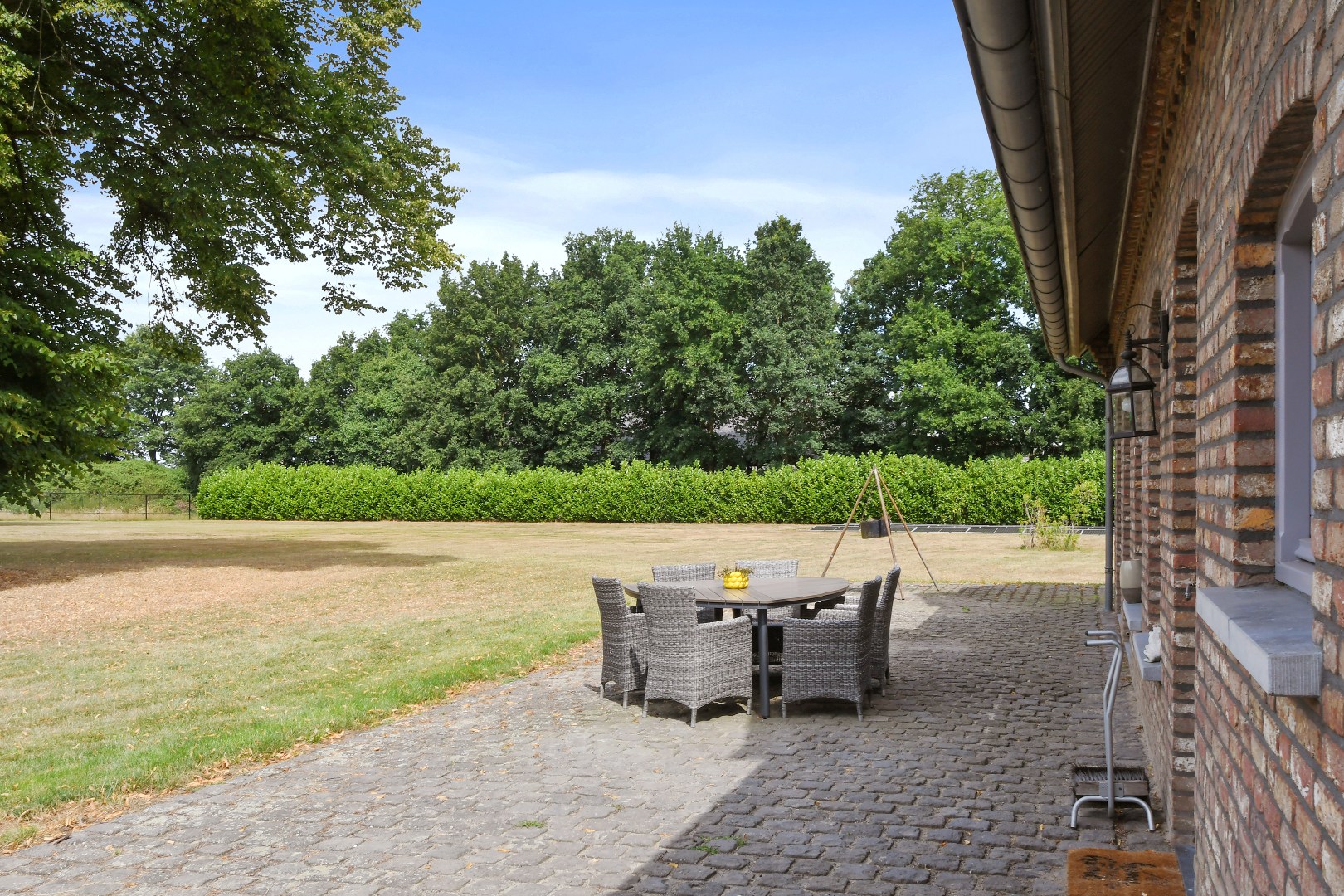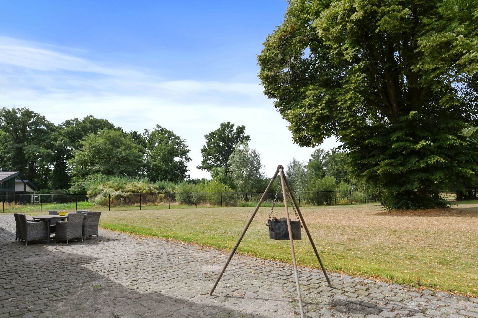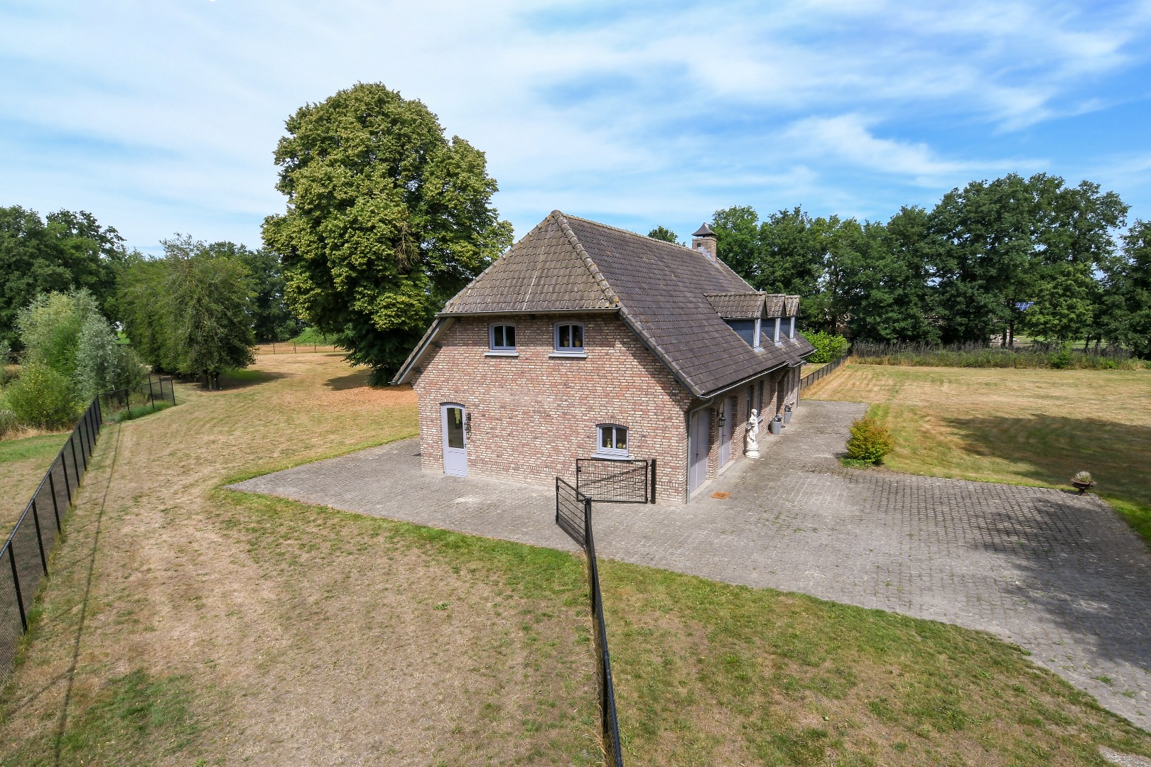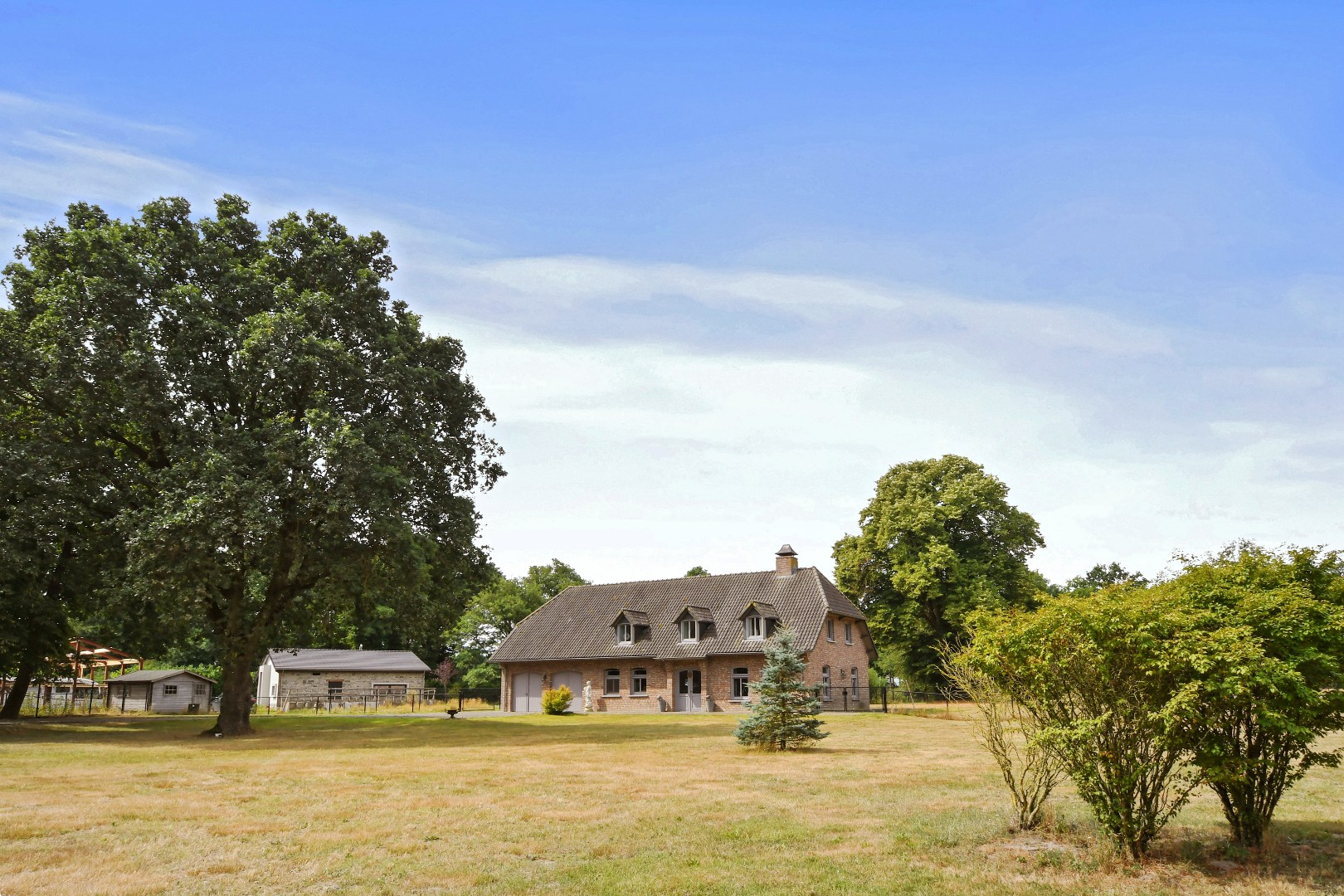 De prachtig aangelegde, volledig omheinde tuin biedt optimale privacy en is een paradijs voor natuurliefhebbers. De statige oprijlaan, het grote gazon, de volwassen bomen en de eigen grondwaterput completeren het geheel. Het perceel is uitermate geschikt voor het hobbymatig houden van dieren, zoals paarden aan huis.