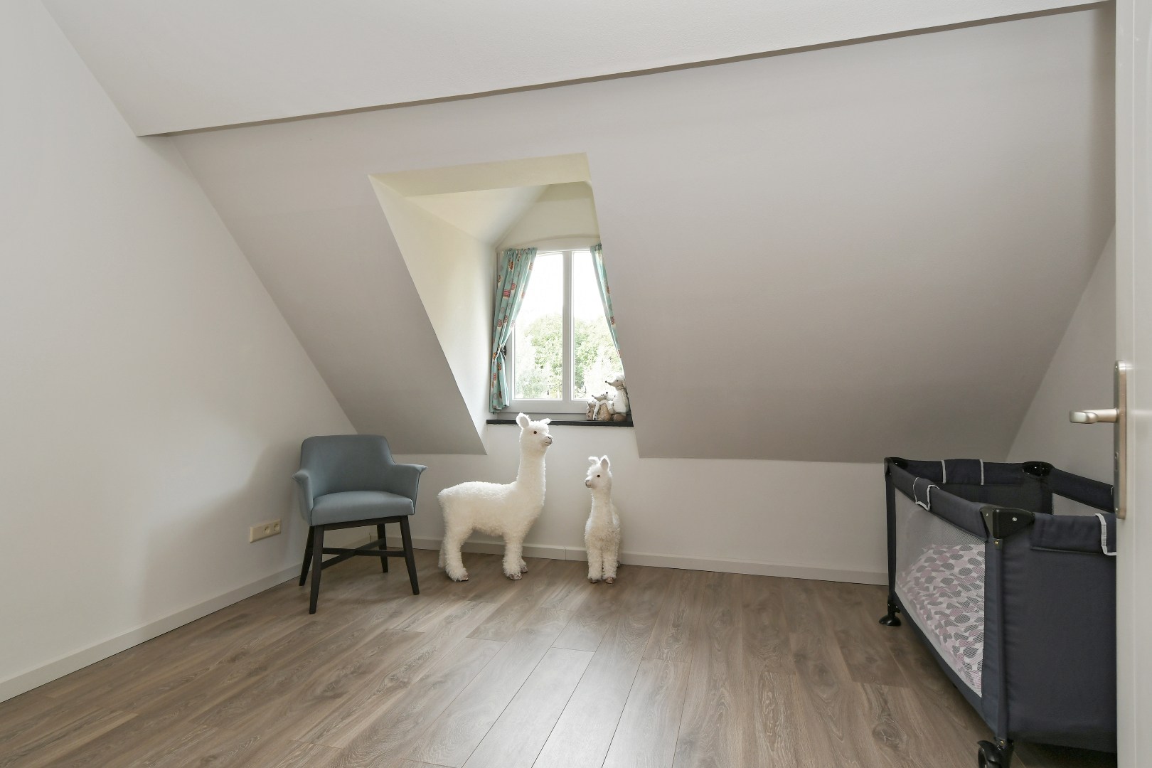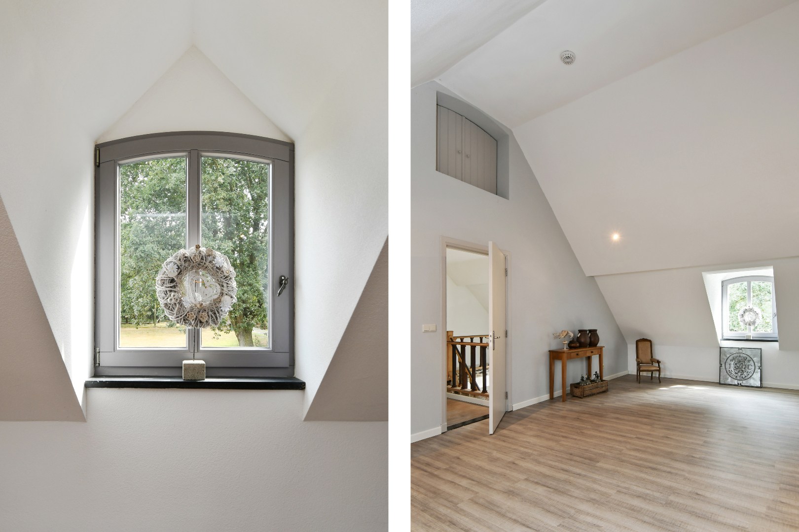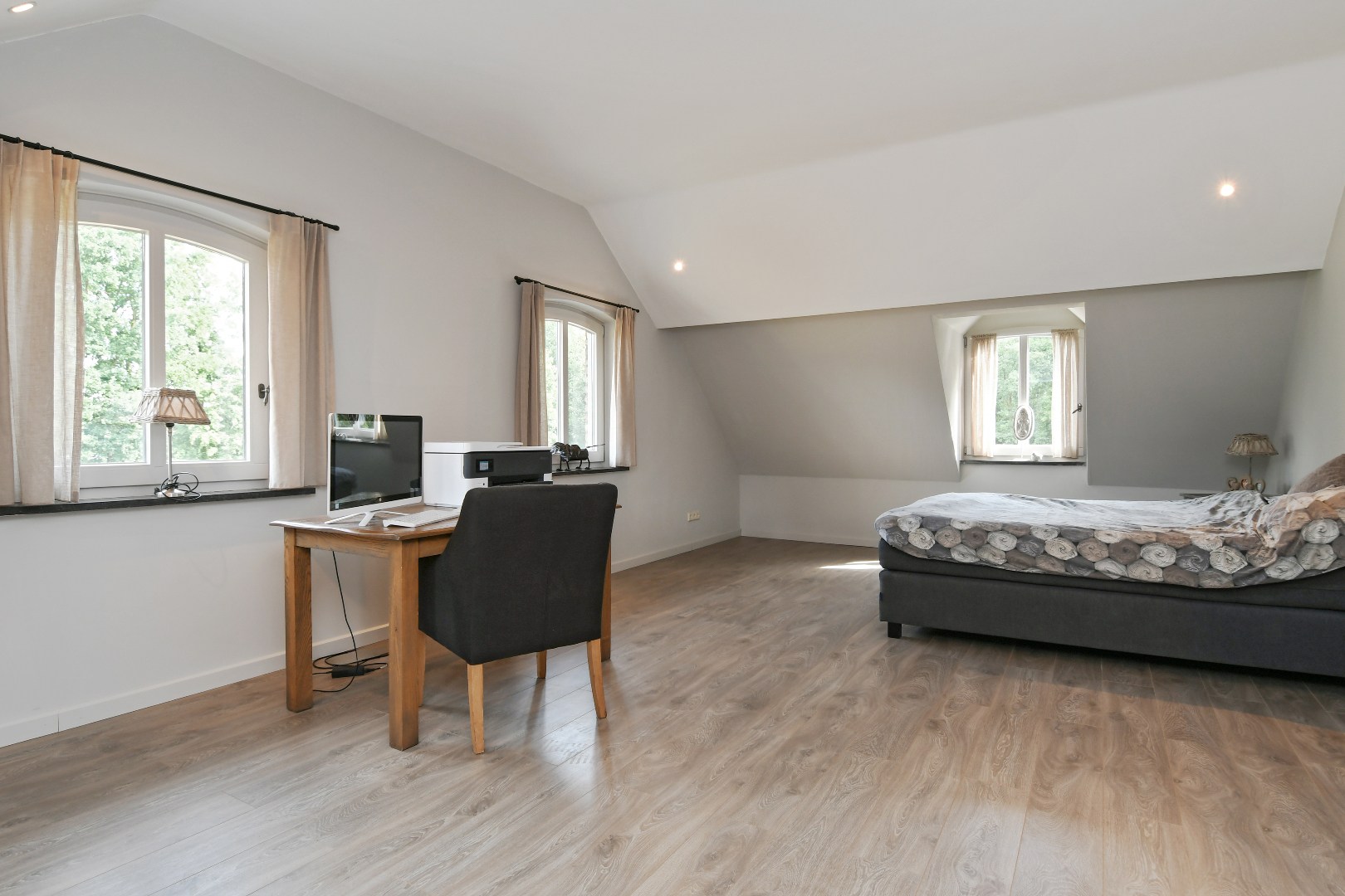 Boven de hobbyruimte bevindt zich nog een grote, multifunctionele kamer die momenteel in gebruik is als atelier.