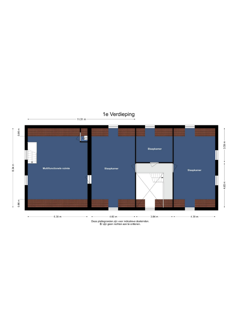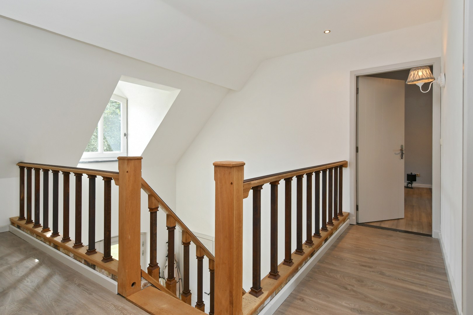 1e verdieping: De ruime overloop biedt toegang tot drie zeer riante slaapkamers, allen voorzien van een moderne laminaatvloer en strak gestucte wanden. De grootte van de kamers biedt de mogelijkheid om eenvoudig extra (slaap)kamers te realiseren.