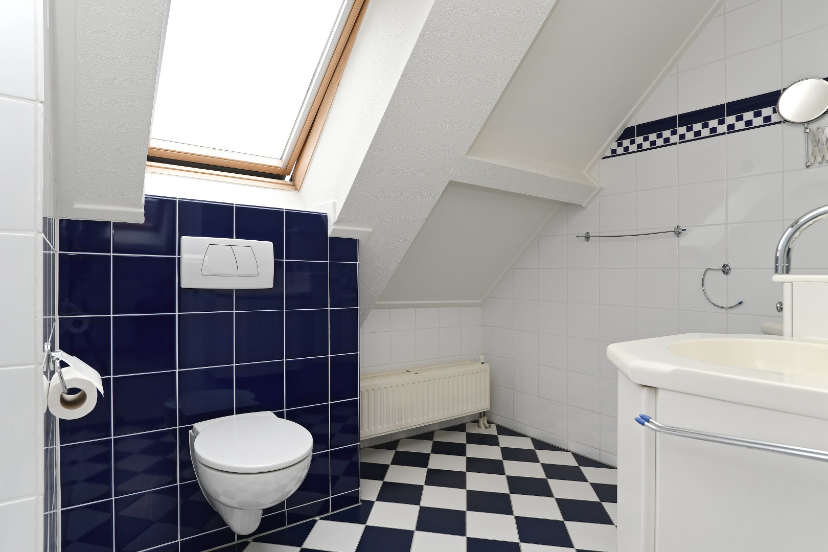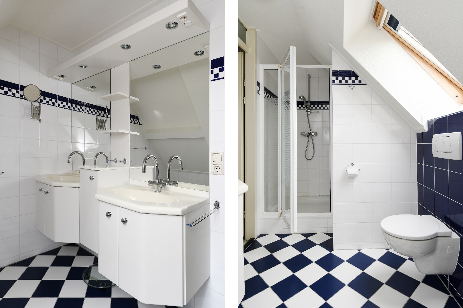 Op de bovenverdieping bevindt zich een royale overloop met toegang tot twee zeer ruime slaapkamers (ca. 19 m² en 34 m²). De grootste slaapkamer beschikt over een handige inloopkast/bergruimte en beide kamers zijn netjes afgewerkt met kastruimte in de knieschotten. De ruime badkamer is uitgerust met een douche, tweede toilet en dubbele wastafel met grote spiegel.