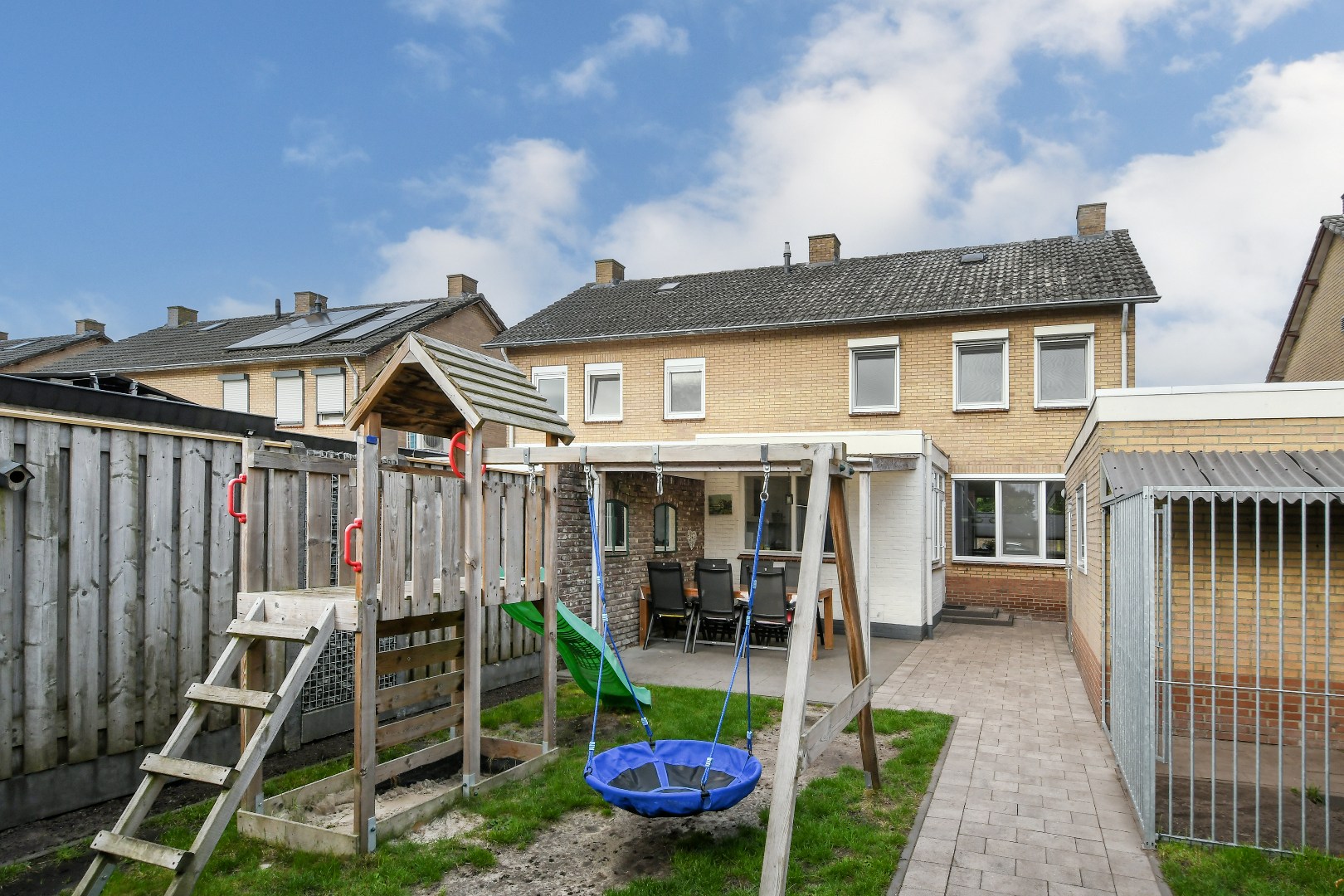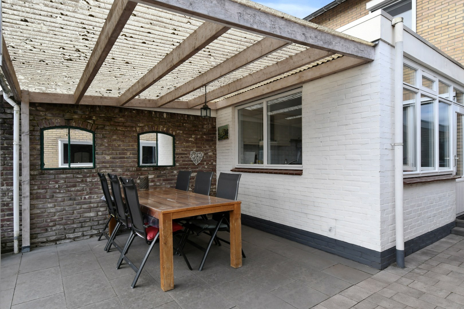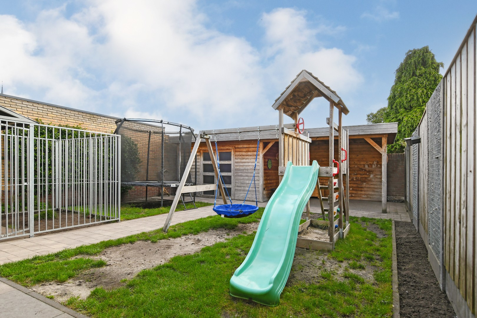 De achtertuin is aangelegd met een gazon, een sfeervolle overkapping, een ideale plek om het hele jaar door te genieten van lange avonden buiten. Achterin de tuin staat een houten tuinhuis met extra overkapping. Dankzij de achterom is de tuin bovendien makkelijk bereikbaar.