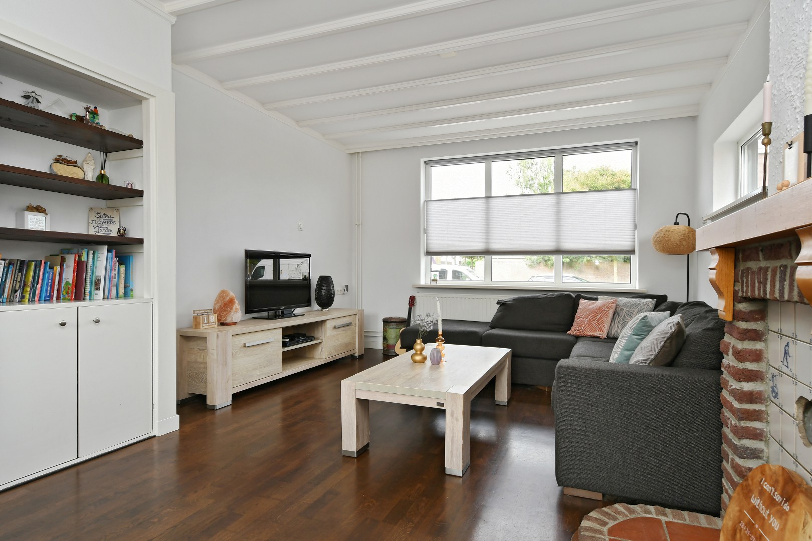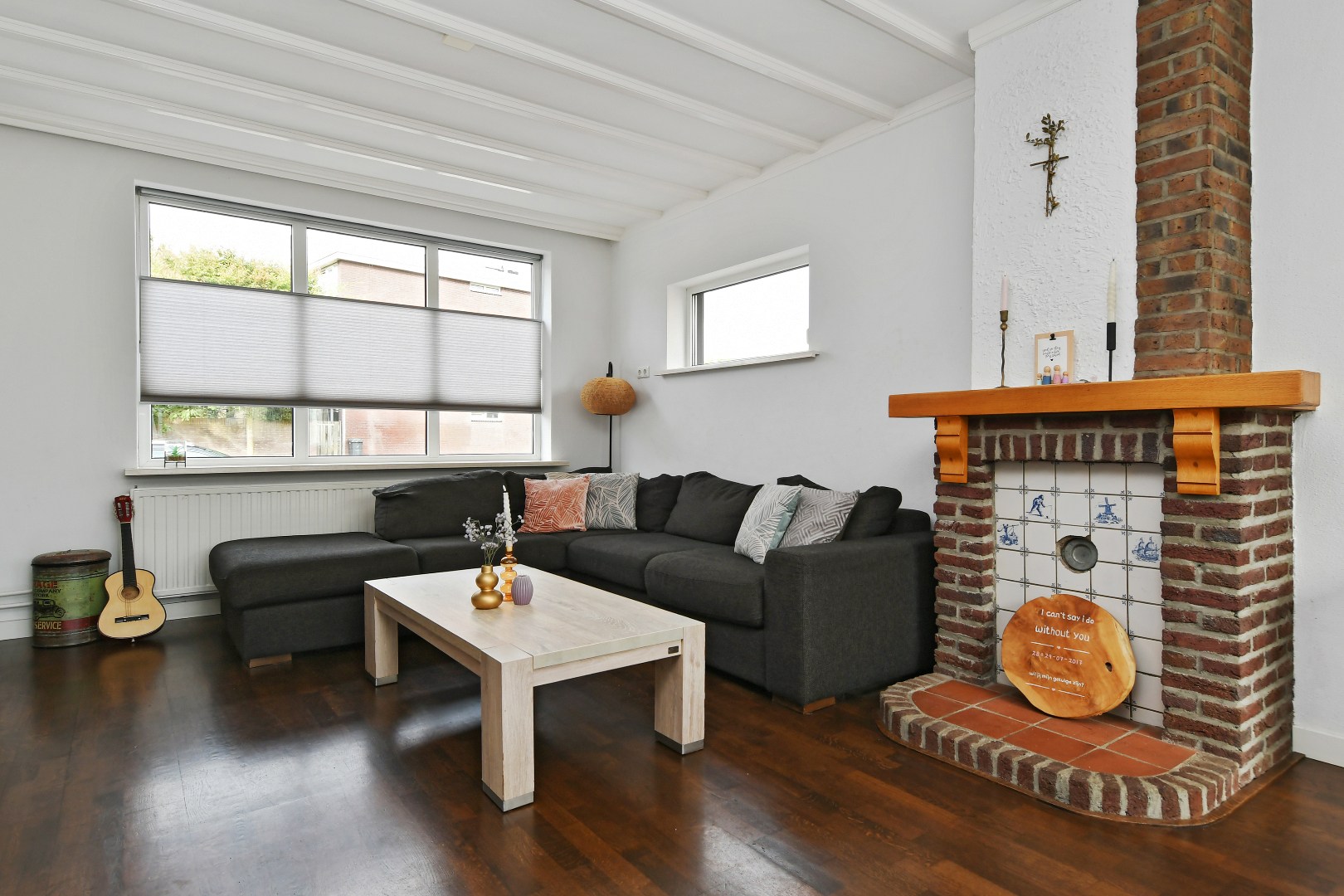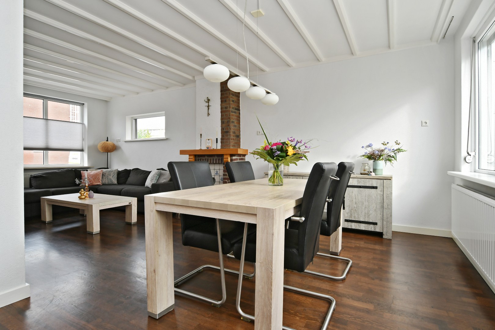 • Sfeervolle woonkamer met balkenplafond en schouw (voor houtkachel)